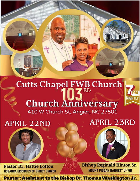 April 22, & 23 - Cutts Chapel 103rd Church Anniversary @ 7PM Nightly.